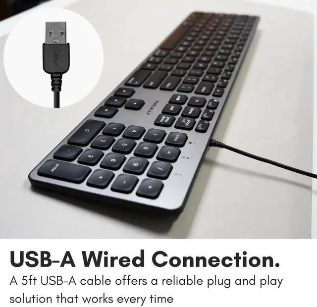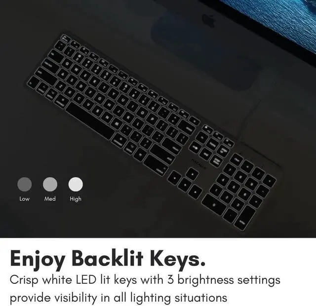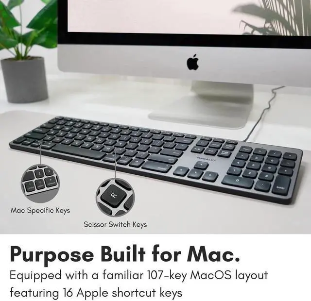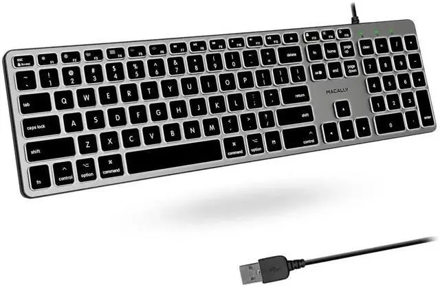 Macally Backlit Mac Keyboard - Quiet, Sleek, and Functional - 3 Brightness Levels, 107 Keys, 5ft USB Wired - Apple Keyboard - Backlit Wired for Mac, iMac, MacBook Pro/Air - Space Gray