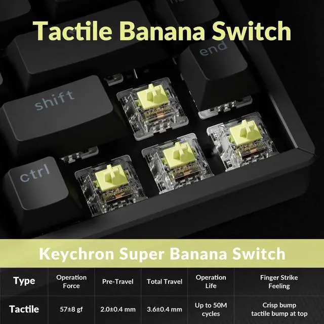Keychron K2 75% Layout QMK Wireless and Wired Options Mechanical Keyboard Super Banana Switch, Paired with Shine-Through Double-Shot PBT Keycaps for Mac Windows-Version 3
