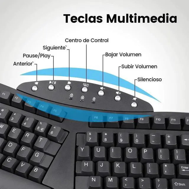 Diseño ergonómico con divisiones: reposa muñeca integrado para apoyo de la muñeca, relaja la presión nerviosa mediana y reduce la tensión en el antebrazo; Posición natural del brazo y de la mano durante el tipeo, minimiza los riesgos de TMS y el síndrome del túnel carpiano