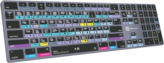 Elevate your Blackmagic editing setup with the new 'Titan' Logickeyboard tailored for DaVinci Resolve. The Titan boasts backlit keys and Logickeyboards innovative Dual-Connectivity system, allowing seamless wireless or wired connection toggled with a simple keypress. Encased in a sleek aluminum chassis, it caters to discerning editors who prioritize workspace aesthetics. For wireless functionality, the Titan Logickeyboard utilizes a durable lithium-ion battery, providing up to 300 hours of uninterrupted use when the backlighting is disabled. Ideal for post-production facilities, professional video editing firms, or any individual dedicated to leveraging Blackmagic's DaVinci Resolve efficiently.