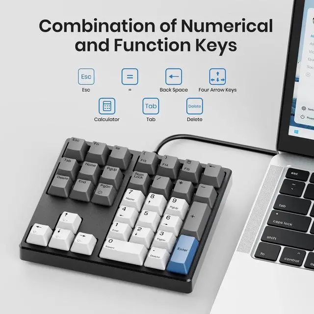 Kisnt Mechanical Number Pad, Hot Swappable Numpad with Gateron Switches, 34 Keys Wired USB Keypad White Backlit Numeric Keypad with PBT Keycaps for Laptop PC Compact Keyboards (Blue Switch)