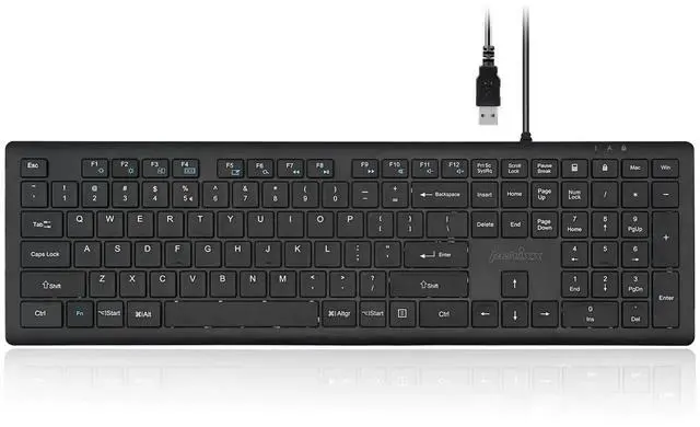Perixx PERIBOARD-210II US Wired Full-Size USB Keyboard with Quiet Scissor Keys for Desktop, Laptop, and Tablet - Black - US English