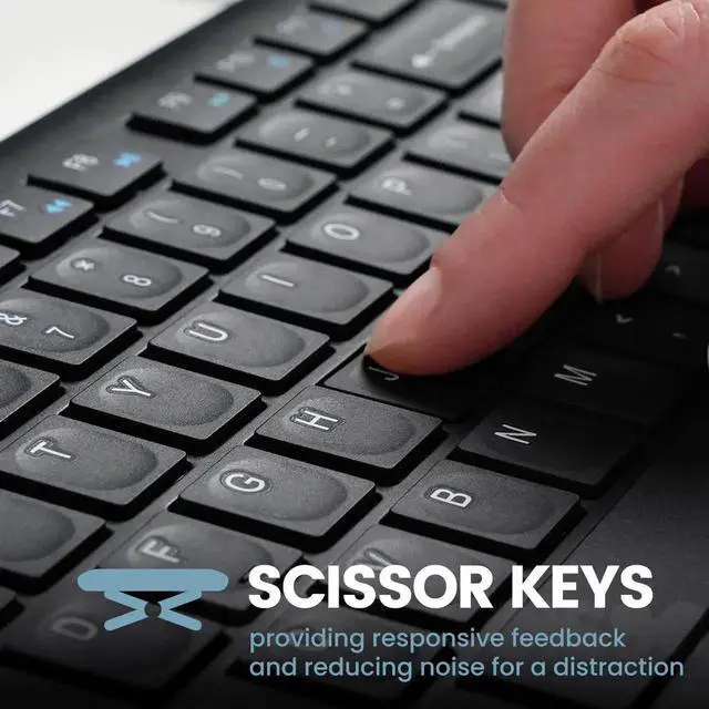 ENHANCED TYPING COMFORT - Experience effortless typing with quiet scissor key switches, providing responsive feedback and reducing noise for a distraction-free environment, ideal for prolonged use.