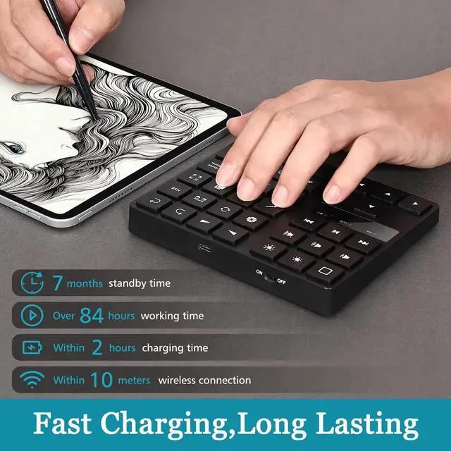 Bluetooth Keypad for Procreate, 35 Keys One Handed Shortcut Drawing Keyboard, Ergonomic Rechargeable Drawing Shortcuts