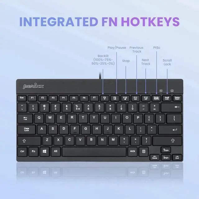 Perixx PERIBOARD-326 Mini Keyboard with Backlit Feature and Low Profile Keys