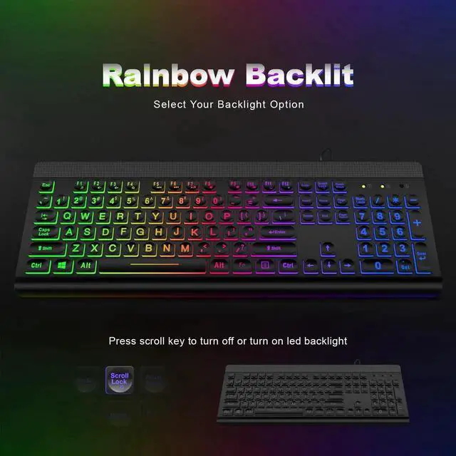 This wired keyboard features ABS environment-friendly plastic, the UV coating ensures that are more fade-resistant. It supports plug-and-play functionality and boasts wide compatibility with Windows 7/8/9/10/11/95/98/XP/2000/ME/VISTA.