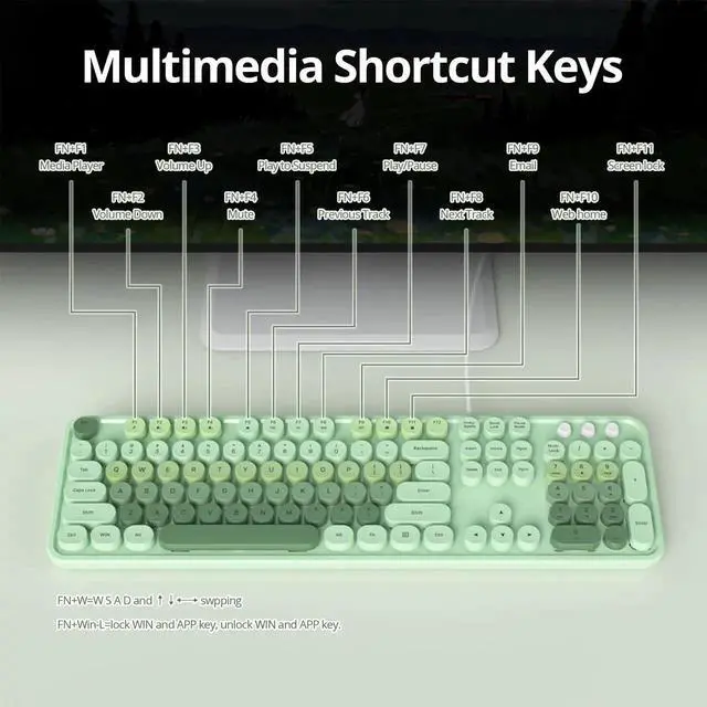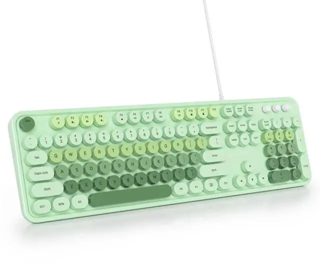 SbocKeeb Retro Punk Keyboard, Full Size Typewriter Green Keyboard Floating Key Design, Wired USB, with Foldable Stands Compatible with PC/Mac/Laptop/Computer Keyboard (Green)
