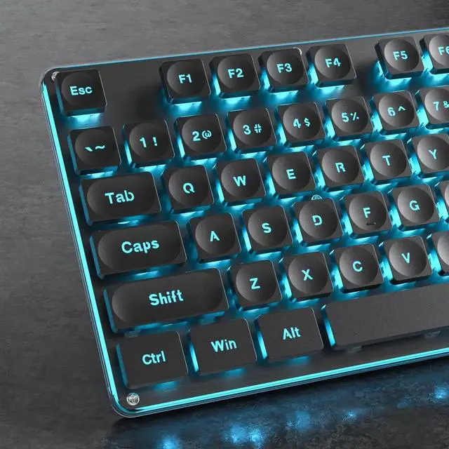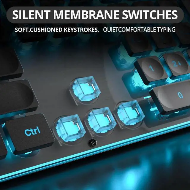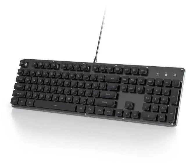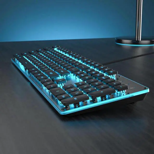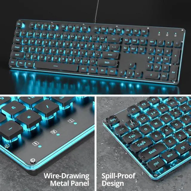 Owpkeenthy Black Computer Keyboard, Full-Size Typewriter Ice Blue Backlit Quiet Office Gaming Keyboard with Cool Square Punk Keys Metal Panel for LaptopPC Desktops (104 Black)