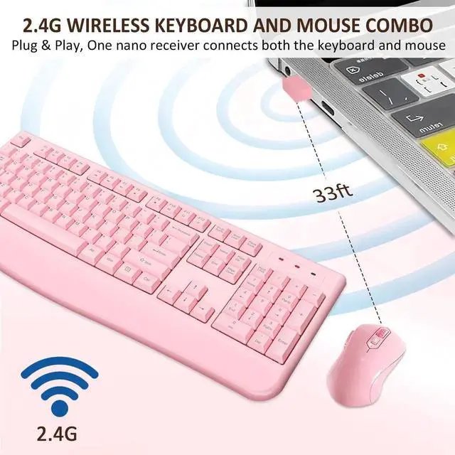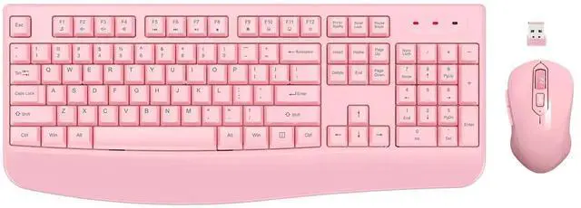Wireless Keyboard and Mouse Combo, EDJO 2.4G Full-Sized Ergonomic Computer Keyboard with Wrist Rest and 3 Level DPI Adjustable Wireless Mouse for Windows, Mac OS Desktop/Laptop/PC (Pink)