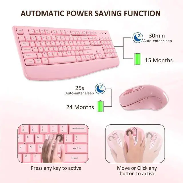 Automatic Power Saving FunctionThe EDJO wireless keyboard and mouse combo has the function of automatically entering the power-saving state. When you stop using the keyboard more than 30 minutes, stop using the mouse more than 25 secon
