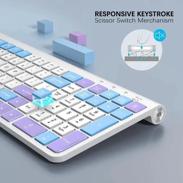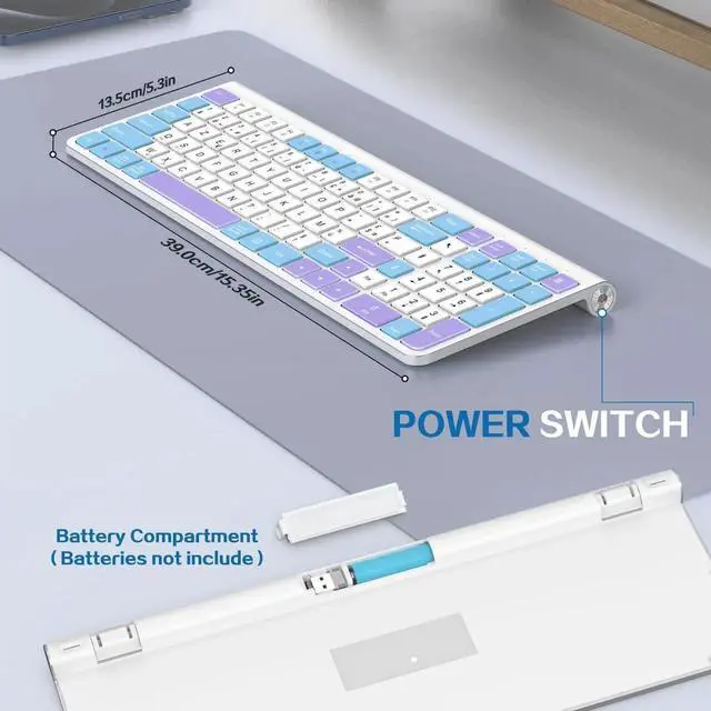 GAMCATZ Colorful Wireless Keyboard with Low-Profile Keys-Soft Touch, Cute, Quiet Design, Windows & Mac OSOffice Cordless Slient Computer Keyboard for Desktop, Laptop, PC, Mac, Windows-Purple Blue White