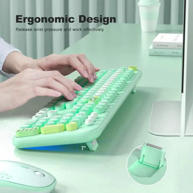 MOFII Wireless Keyboard and Mouse Combo, Full Size 2.4G Plug and Play Typewriter Retro Round Computer Keyboard and Mouse Set for Windows, Computer, Desktop, PC, Notebook - (Green Colorful)