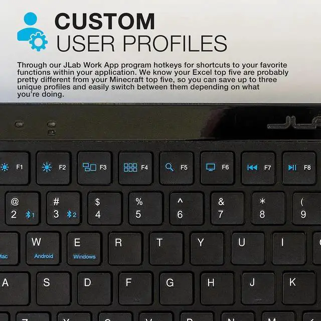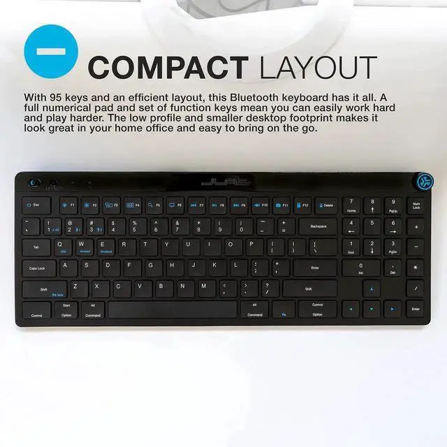 JLab JBuds Wireless Keyboard, Black, 95 Keys, Connect Via Bluetooth or USB Wireless Dongle, Multi-Device Toggle, Soft Touch Keys, Smart Media Knob, Custom User Profiles, Rechargeable (1 Pack)