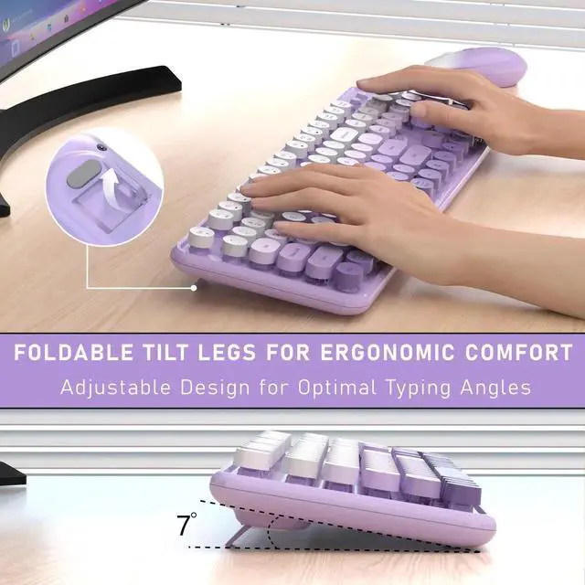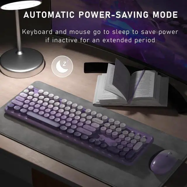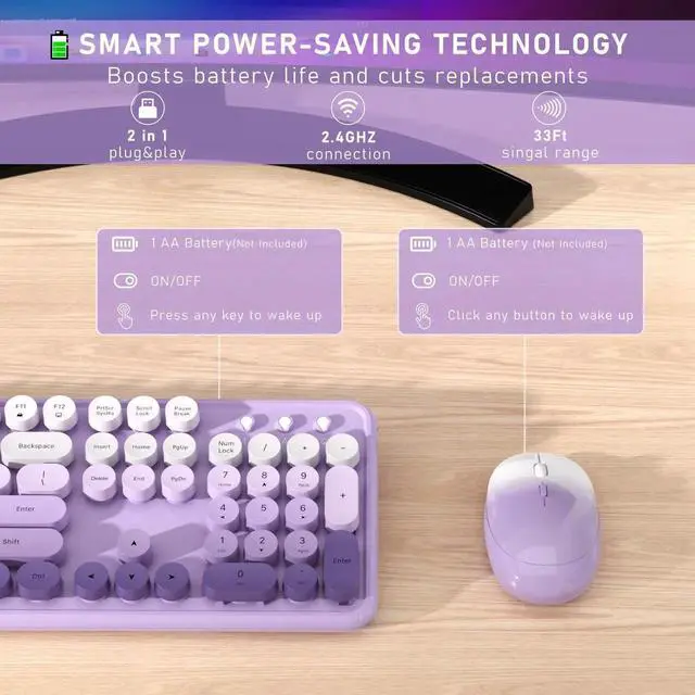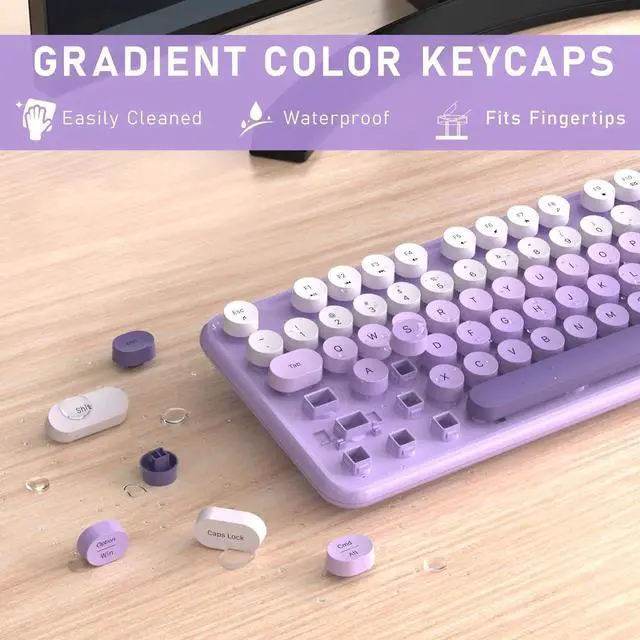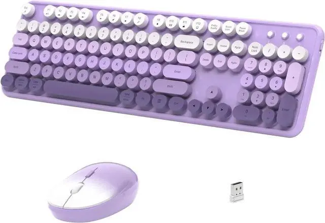 Links9+ Wireless Keyboard and Mouse, Full-Size Retro Typewriter Keyboard with Round Keycaps, 2.4GH z for Windows, Mac, Laptop, PC, Desktop (Purple Gradient)