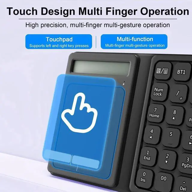 Bluetooth Number Pad, Foldable 2.4G Wireless Numeric Keypad with Display Calculator & Touchpad, Wireless Number Pad Slim 23 Keys Portable Financial Accounting Numpad Keyboard for PC Laptop Desktop