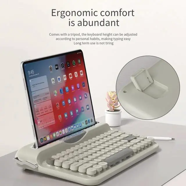 Ajazz AF84 Wireless Membrane Silent Typewriter Keyboard, Bluetooth/2.4G Dual-Mode Connection, Cute Retro Aesthetic Design with Integrated Stand for Tablet, Phone, PC and Win/Mac/Android Black