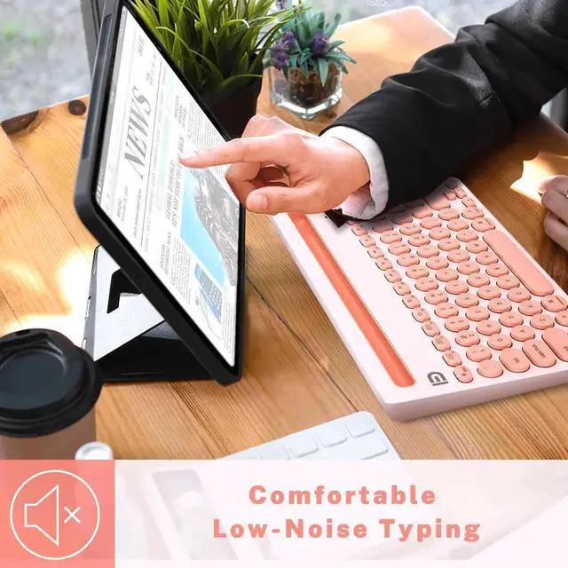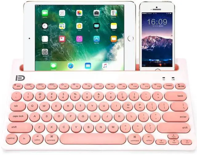 Attoe Dual Channel Multi-Device Universal Cute Wireless Bluetooth Keyboard Portable Slim with 20m Connection Distance for Tablet Smart Phone PC Windows Android iOS Mac (Pink)