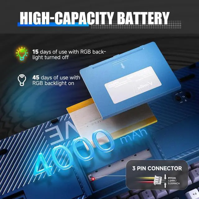 Long-Lasting 4000mAh Battery: Power through work and play with a high-capacity battery that lasts up to 45 days with RGB off, or 15 days with the lights on. The detachable cover makes battery replacement a breeze, and NTC temperature control ensures safe operation.