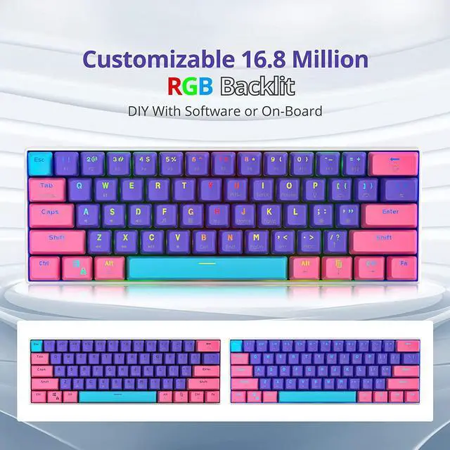 RGB Custom Gaming Keyboard60% RGB keyboard includes backlight color and backlight effect, different backlight matching brings you different visual experience. The brightness & light speed of the light can also adjust it to your liking