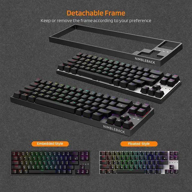 Hot-swappable Quiet Red - Hot-swap PCB allows you to replace 3 pins/5 pins switches freelycompatible with any MX-style switch (brands like Gateron and Kailh, etc. ). Equipped with linear red switch without tactile bump. A favorite for nimble gamers who require swift reactions with minimal resistance or those seeking for quiet typing experience.