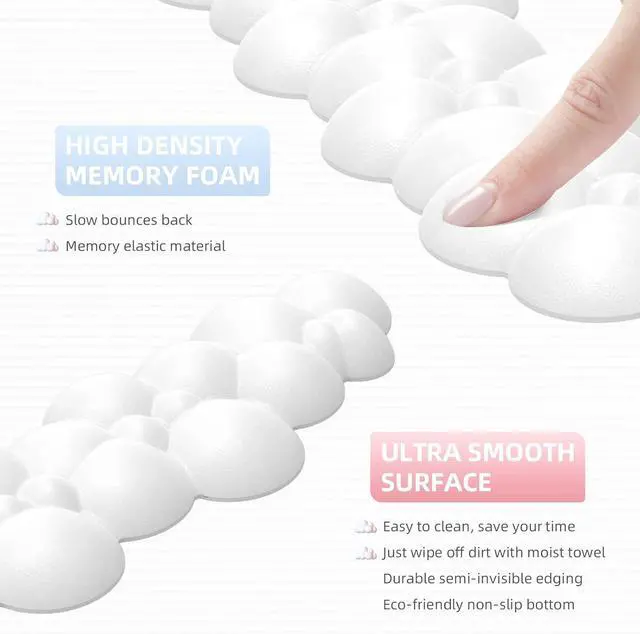 Unique cloud shape design: The cloud-shaped design of the keyboard wrist rest fits your hand better. Keep your wrists in a straight line, not at an angle to the keyboard. The new concave-convex design allows the air to circulate more, avoiding long-term stuffy use and keeping the wrist comfortable and dry. Our design has a simple and happy soul, looks very cute and stylish, and is a perfect work and study companion.