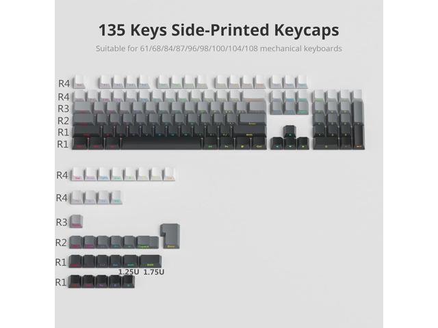 - Side-Printed Backlit This keycap set adopts the gradient effect, with the side print design, show more dazzling RGB lamp effect on keyboard, letting an amazing amount of shine through, If it is a South-Facing Backlight, the effect is better