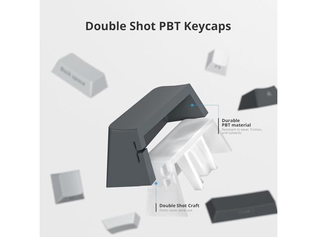 - Double Shot PBT-These are double shot keycaps, so the legends on the keycaps will not fall off, even after prolonged use. The keycaps are about 1.3-1.5mm thick and durability . It would be a good choice for those who like custom keyboards.