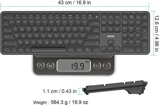 Ultra Thin and Heavy Duty: Compact size ( 16.9 X 4.96 X 0.4 in) and heavy duty ( 19.9 oz) but provides full size keys, arrow keys, number pad, shortcuts for comfortable typing.