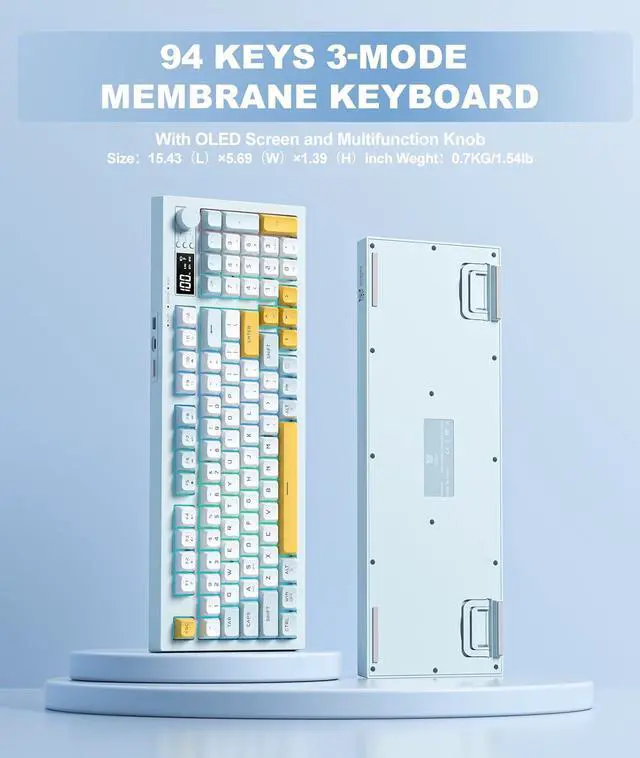 Enhanced Membrane Typing ExperienceExperience mechanical-like satisfaction with this optimized 94-key wireless keyboard. Featuring responsive padding technology, reduced actuation force, and shorter key travel, it delivers precise tactile feedback in a near-silent profile perfect for gaming and office use.