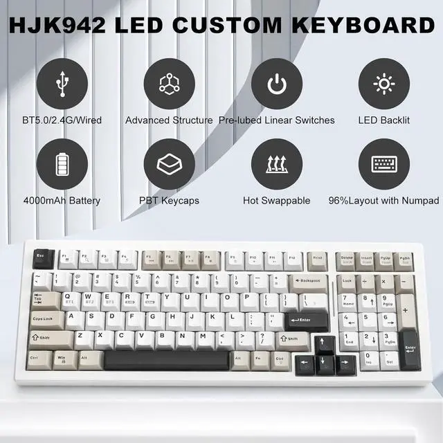 Gasket-Mounted 99-Key Compact Layout & Noise Reduction Space-Saving 96% Layout with Premium Stability 99-key design retains numpad and arrows while saving 20% desk space. Gasket structure + 5-layer silicone padding eliminates hollow sounds and enhances keystroke consistency for tactile comfort.