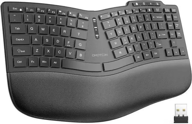2.4G Wireless Keyboard: The ergonomic split wireless keyboard provides a stable wireless connection within a range of 10 meters for use with computers, desktops and laptops.