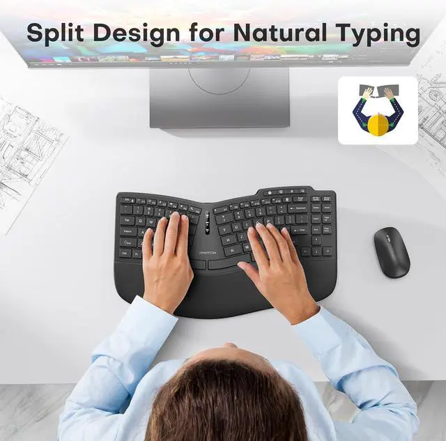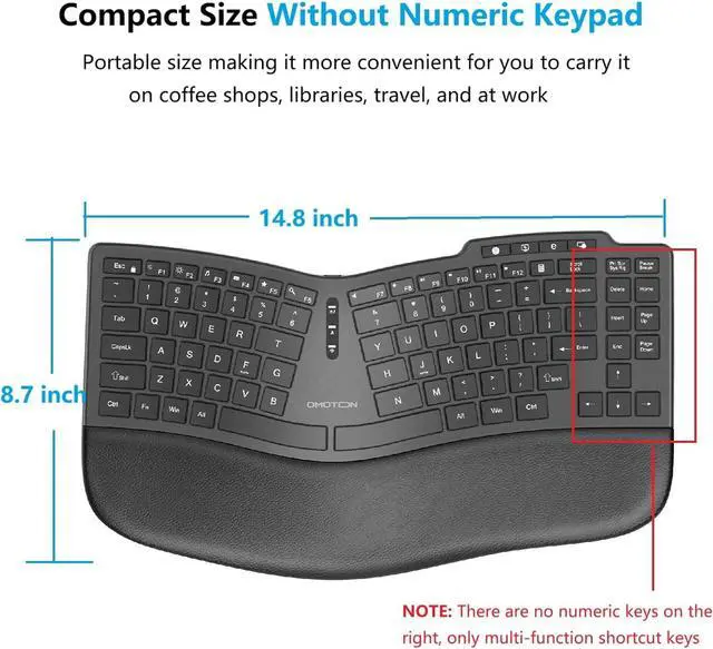 Ergonomic Split Keyboard: it' s specially design for Windows, NOT fully compatible with other systems. The split design of this wireless Keyboard provide a more natural and comfortable typing position, eliminating tension and fatigue in the wrists, forearms and shoulders during prolonged use. Ideal for use in the office or at home