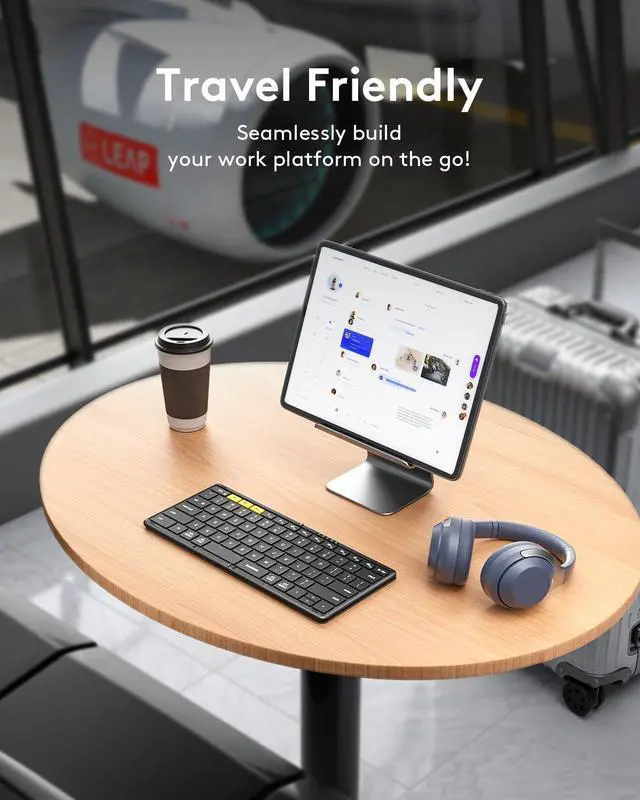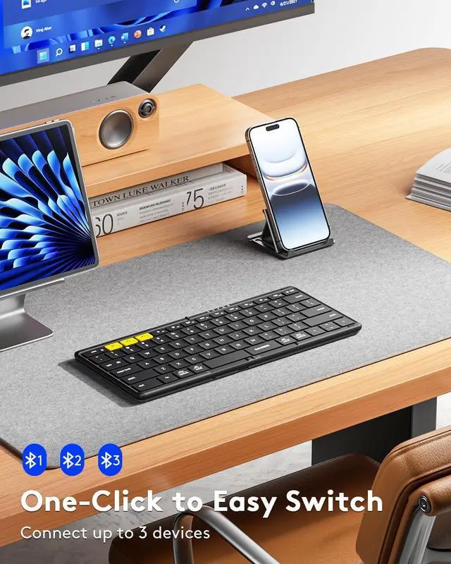 Connect up to 3 Devices Pair up to 3 devices simultaneously with only 1 click to switch between them(such as ipad, smartphone, tablet or laptop). Large, well-spaced keys give your hands plenty of room to type comfortably. X-shaped scissor keys give you that perfect bounce. No lagging within 33 feet of operation distance. Provide you a seamless typing experience that will keep you focused on your work!