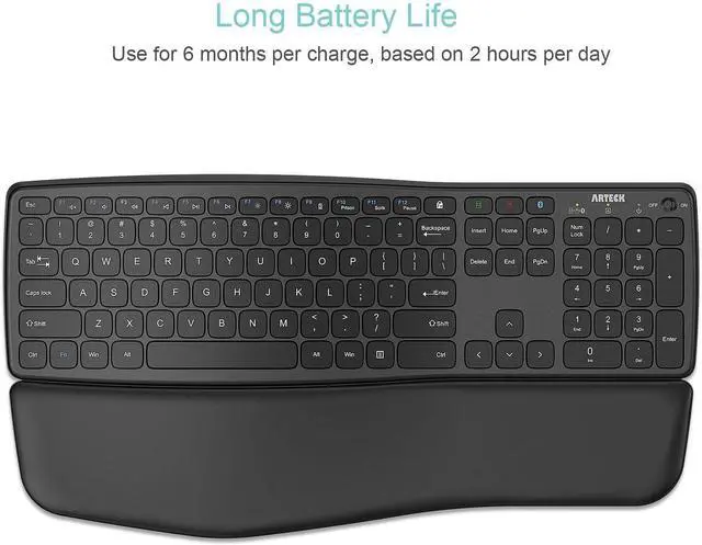 Package contents: Arteck HD323 Wireless Keyboard with detachable palm rest, one nano USB-A receiver, one nano USB-C receiver, USB-C charging cable, welcome guide, our 24-month warranty and friendly customer service.