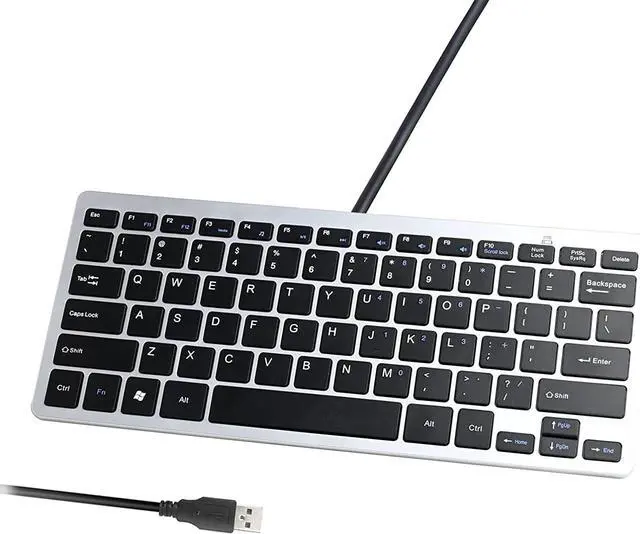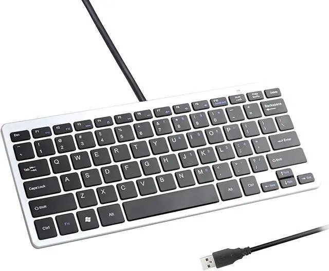 This is compact, mini, thin, lightweight scissor switch USB wired keyboard, fits right in your bag.