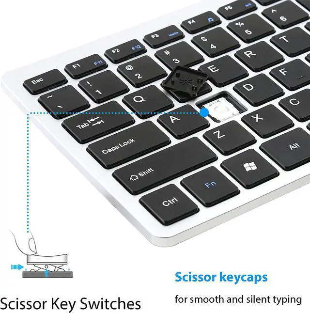 The scissor key design provides good flexibility for the keys, making typing more clear and comfortable. It makes a quiet click/clack sound, it' s near silence will make you pleasant when typing.