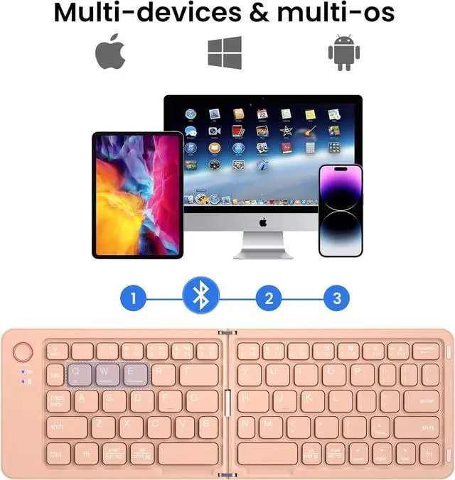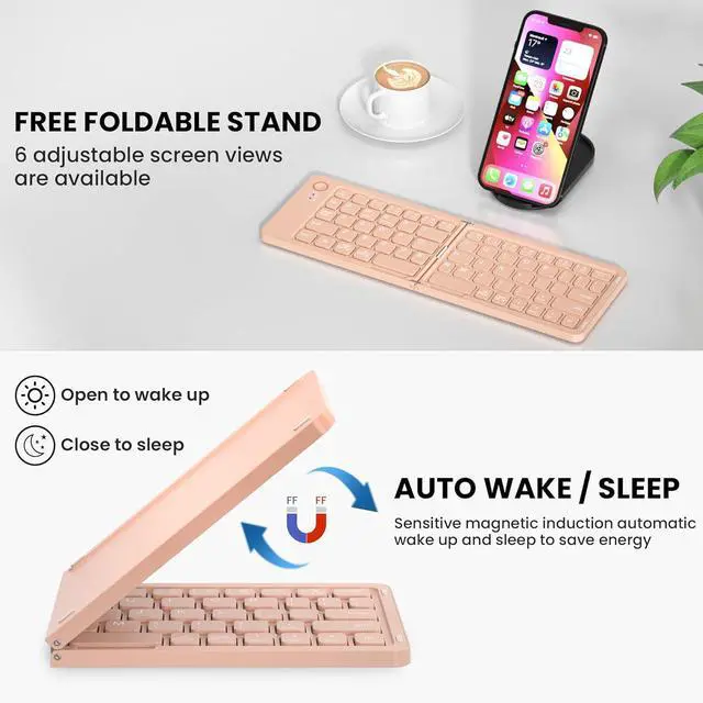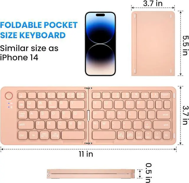 Bluetooth Foldable Keyboard: JPHTEK A portable folding keyboard with a free phone holder allows you to work anywhere, anytime! The standard-size design provides accurate, fast typing, just like the desktop keyboard you are used to. Quiet keys allow you to focus on your work. Perfect for travel and business trips.