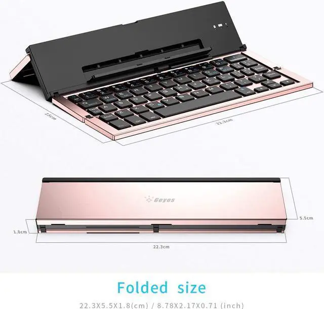 Geyes Folding keyboard: Geyes tri-folding bluetooth keyboard, add more functionality to satisfy everyone' s need. Longer battery life, wide compatibility, double bluetooth channels, triple folds and mini packed size, they all specifically designed for easy and portable daily use.