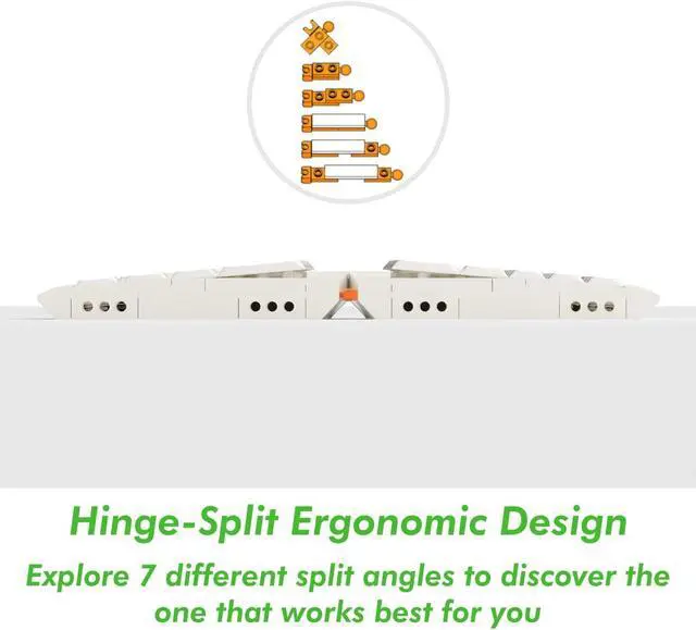 Hinge-Split Design: It allows Israfel to adjust the angle, offering up to 7 different tilt options, enabling users to set the keyboard at the angle that best suits their ergonomic preferences. This feature is particularly beneficial for long typing sessions, as it reduces strain on the wrists and shoulders, helping maintain good posture and reduce fatigue.
