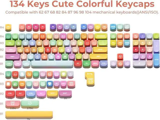 Full Layout Compatibility, This keycap set consists of 134 keycaps, including 108 standard keys and 26 modifiers keys, fits 60%, 65%, 75%, 80%, 96%, and 100% ANSI and ISO layout mechanical keyboards with MX-style switches (Cherry MX, Gateron, etc. )