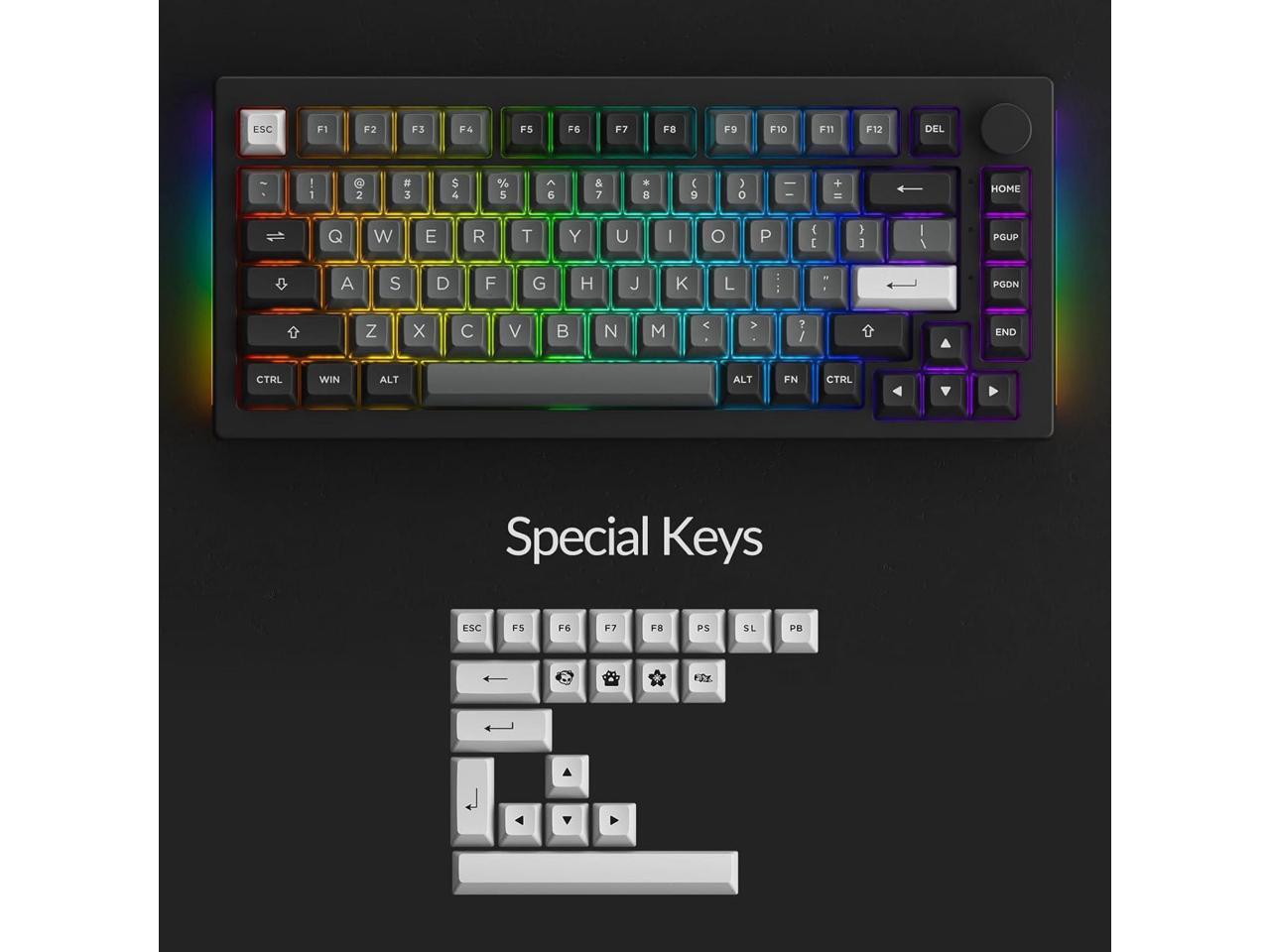 - 75% BLACK & SILVER STYLE The black & silver color scheme combines the classic elegance of black with the sleek sophistication of silver. Akko 5075B Plus comes with the function row and a multi-media rotary encoder for productivity.