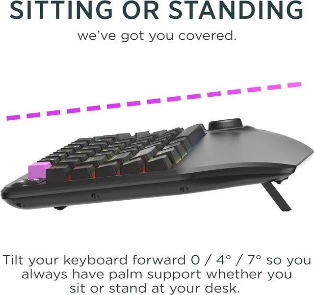Works with Standing Desks Adjustable forward tilt ( 0 / -4 / -7 degrees) keeps hands supported while sitting or standing.