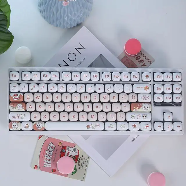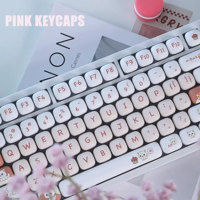 CUTE KAWAII KEYCAP: Custom cute little cat design keycaps provide unique visual appeal to the keyboard. Rounded edges not only provide a soft touch but also reduce finger fatigue, making it perfect for extended use