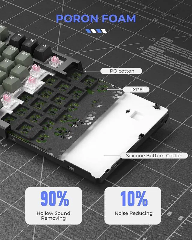 Gasket Mount&Hot-SwapThis wired mechanical keyboard adopts gasket-mounted structure for a quiet, stable and smooth typing operation, built with full-key hot-swappable PCB base, which can only be swapped with Outemu magnetic switch, using high precision stabilizer pre-lubed satelite switches to ensure a smoother typing experience with less wobbliness on the big keys.