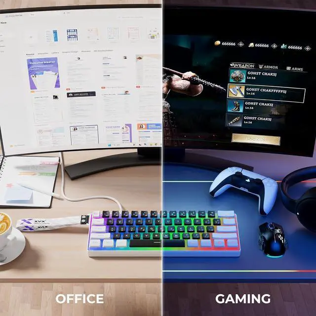 60% Compact DesignXVX Wired gaming keyboard compact mini design, save space on the desktop, novel pudding keycap color matching, No numpad, both gaming and office, easy to carry size can be easily put into the backpack.