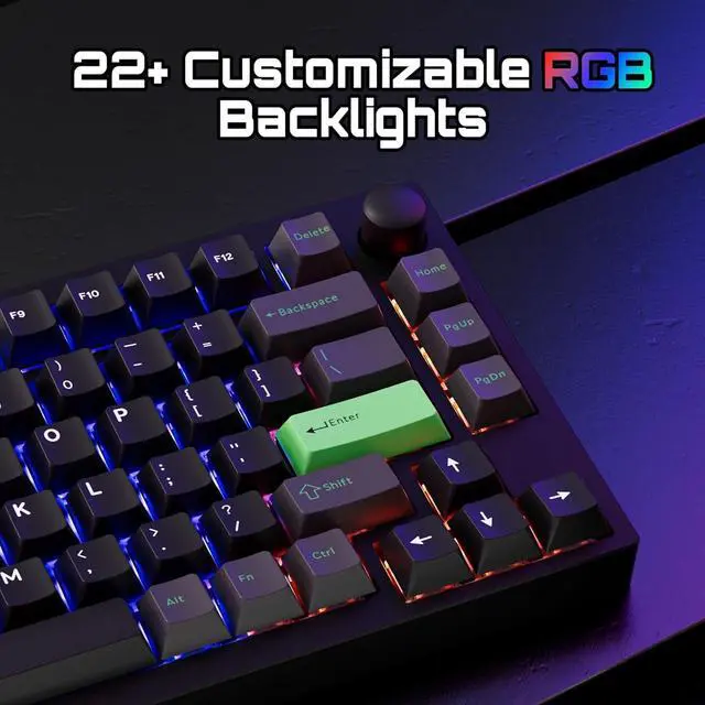 RGB & Hot-Swap: Non-through PBT keycaps enhance RGB visibility while offering a premium feel. The hot-swappable design lets you change switches effortlessly, allowing for a fully customized typing experience.