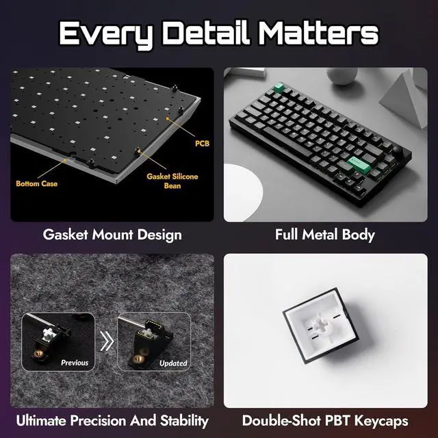 Precision & Performance: The P1 HE is a 75% wireless magnetic switch keyboard built for speed, accuracy, and control. Featuring Gateron double-rail magnetic switches, a multifunctional knob, gasket mount, acoustic foams, and PBT keycaps, it delivers a top-tier gaming experience.
