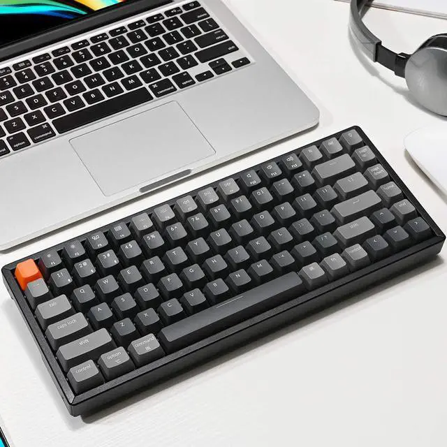 A 75% layout (84-key) RGB backlight compact Bluetooth mechanical keyboard. The ultimate tenkeyless keyboard that retains shortcut and arrow keys. Aluminum frame.