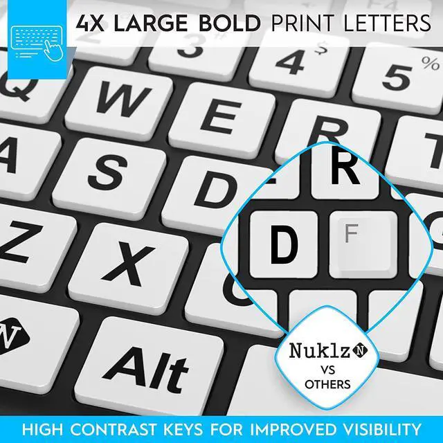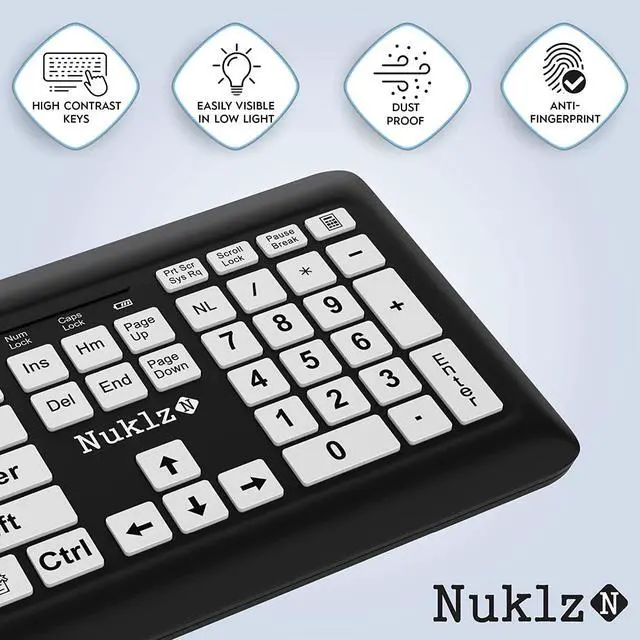 LARGER LETTER PRINT - Typical keyboards have small printed letters on their keys. This ergonomic keyboard features large bold letters on its keys, making it ideal for visually impaired people.