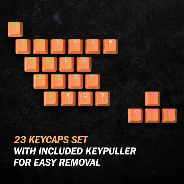 HK Gaming Rubber Keycaps Set | Anti-Slip Texture | Doubleshot Backlit Keycap Set | 23 Keys OEM Profile Key Set | for Mechanical Keyboard | Compatible with Cherry MX, Gateron, Kailh | Orange